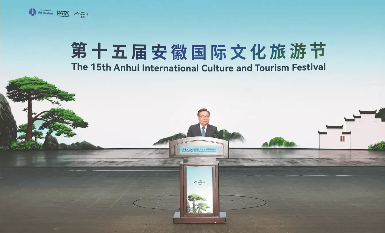 梁言順首先代表省委、省政府向各位嘉賓表示歡迎和感謝。他說(shuō),安徽山清水秀、歷史悠久,文化底蘊(yùn)深厚,每一寸土地、每一片山水,都展現(xiàn)出迷人的風(fēng)光、蘊(yùn)藏著動(dòng)人的故事,山水之韻同人文之勝相得益彰、交相輝映。近年來(lái),我們?nèi)媛鋵?shí)“發(fā)展全域旅游,把文化旅游業(yè)打造成為支柱產(chǎn)業(yè)”的重要指示,堅(jiān)持以文塑旅、以旅彰文,持續(xù)做好“百業(yè)+文旅”“文旅+百業(yè)”大文章,“美好安徽 迎客天下”的金字招牌擦得更亮。當(dāng)前,安徽正處在夯實(shí)基礎(chǔ)、全面發(fā)力、創(chuàng)先爭(zhēng)優(yōu)、跨越趕超的關(guān)鍵時(shí)期。我們將深入學(xué)習(xí)貫徹黨的二十屆四中全會(huì)精神,持續(xù)完善政策保障體系,推動(dòng)文化和旅游業(yè)態(tài)融合、產(chǎn)品融合、市場(chǎng)融合,豐富高品質(zhì)文旅產(chǎn)品供給,打造更多文旅精品,讓海內(nèi)外游客在“詩(shī)和遠(yuǎn)方”的雙向奔赴中續(xù)寫(xiě)新的故事。