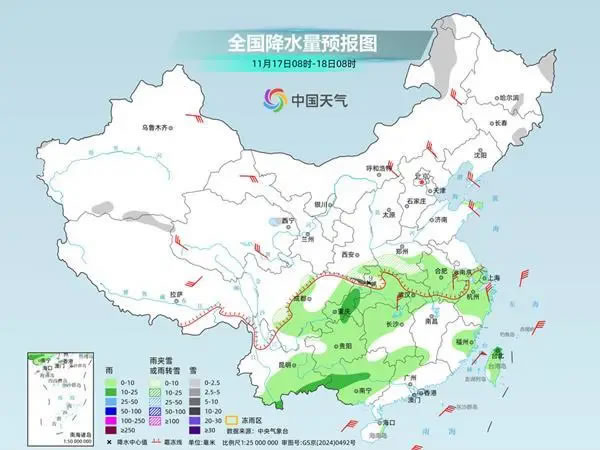 今明兩天(11月17日至18日),寒潮繼續(xù)給我國中東部帶來大風(fēng)、降溫天氣,氣溫將自北向南陸續(xù)跌入低谷,并且會(huì)大面積創(chuàng)下半年來新低。與此同時(shí),寒潮帶來的降雪今天將逐漸減弱結(jié)束,南方陰雨有所增多,明天起全國大部將轉(zhuǎn)為晴朗干燥的天氣格局。