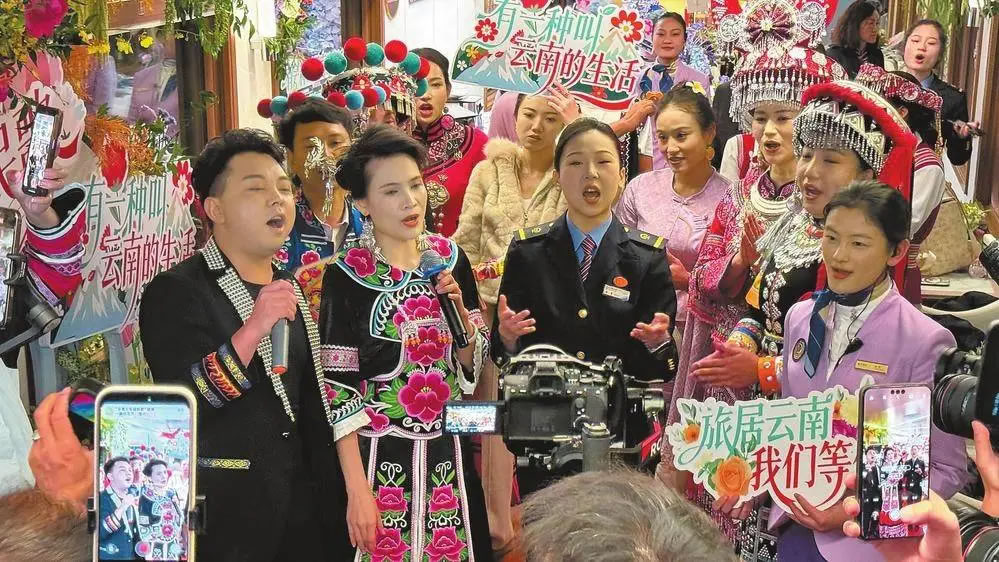 此次推廣活動串聯(lián)起昆明和蒙自,來自云南省花燈劇院、昆明市民族歌舞劇院等團(tuán)隊的數(shù)十名歌唱演員,在“星光·瀾湄號”列車和蒙自南湖畔,通過“一首民歌、一位歌手、一個推介”的方式,向公眾推薦“坐著火車游云南”的精品線路和特色旅居目的地,將有力提升“來云南、游云南、旅居云南”知名度,為冬季旅游消費(fèi)市場注入活力。