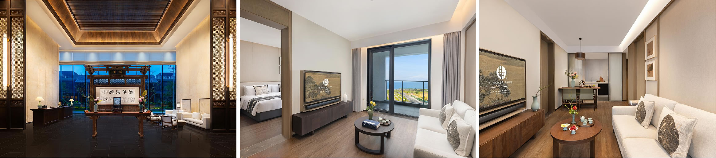 在空間設(shè)計(jì)上,物業(yè)處處藏著“宋韻密碼”:大堂借鑒宋代屏風(fēng)的虛實(shí)隔斷手法,陽光透過全景落地窗與室內(nèi)陳設(shè)交織,復(fù)刻出宋畫中“天光云影共徘徊”的詩意;庭院則以北宋“西園雅集”這一文人盛事為靈感,將千年風(fēng)雅定格為可漫步、可體驗(yàn)的園林景致。同時(shí),物業(yè)也兼顧現(xiàn)代旅居需求:從單房公寓到三房復(fù)式套房,適配高凈值人群、國際商務(wù)人士、親子家庭等核心客群;客房內(nèi)配備高品質(zhì)家庭影院與設(shè)施齊全的廚房,滿足舒適居住需求;毗鄰海濱的地理位置,更讓住客在沉浸宋韻的同時(shí),能輕松銜接海島風(fēng)情與城市煙火,實(shí)現(xiàn)傳統(tǒng)美學(xué)與現(xiàn)代生活美美與共。
