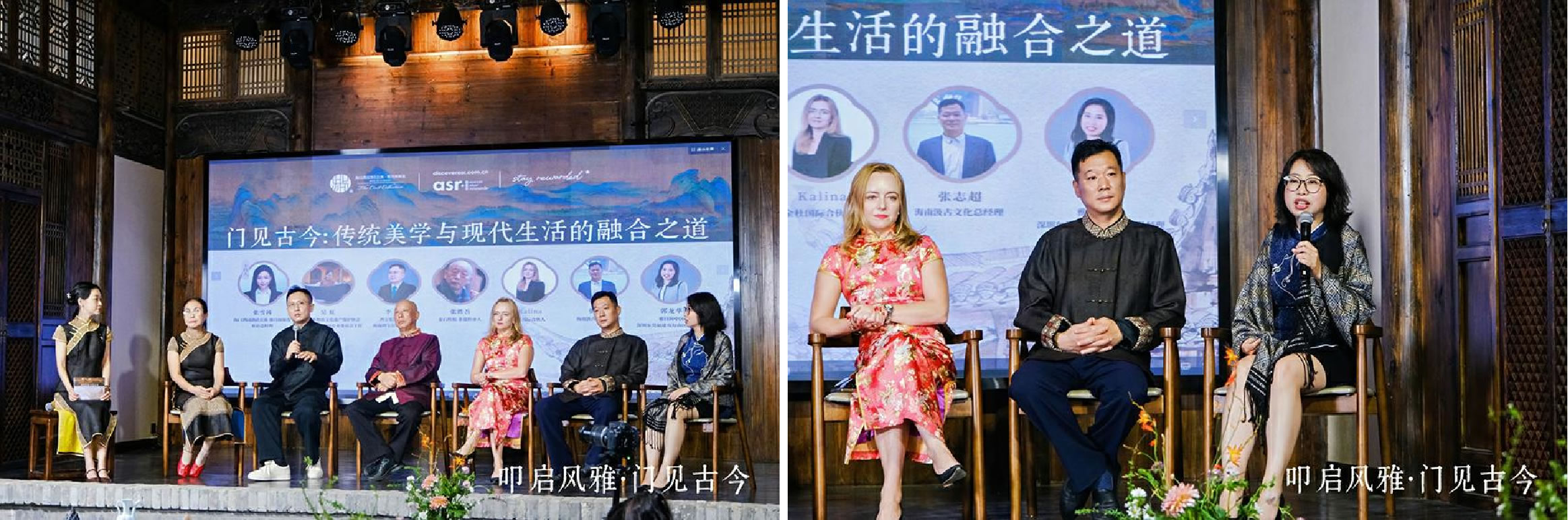 活動(dòng)特設(shè)的分享環(huán)節(jié)更具深度,由海口鴻園酒店公寓·雅詩閣臻選駐店總經(jīng)理張雪茜女士主持,邀請古建筑守護(hù)人、金石收藏大家張勝吾老先生,海南鴻寶投資控股總經(jīng)理李真先生,雅詩閣中國深圳東莞福建及海南區(qū)域總經(jīng)理郭龍華女士,海南黎錦傳承人吳虹女士以及?邙檲@酒店公寓長住客人Kalina共同參與。眾人圍繞“門見古今:傳統(tǒng)美學(xué)與現(xiàn)代生活的融合之道”展開對話,以?邙檲@酒店公寓為實(shí)踐樣本,從品牌戰(zhàn)略選擇、文化遺產(chǎn)守護(hù)、空間設(shè)計(jì)創(chuàng)新及切身體驗(yàn)等維度,探討當(dāng)代旅居空間如何承載歷史傳承與商業(yè)價(jià)值的雙重使命。