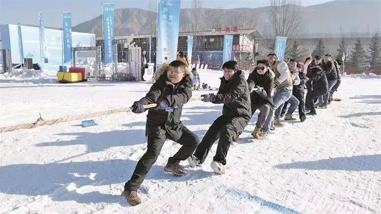 選手們在冰上拔河項目中奮力比拼