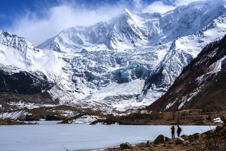 該冰川常年雪光閃耀,景色神奇迷人。這是典型的現(xiàn)代季風型溫性冰川,類型齊全,尤以巨大的冰盆、眾多雪崩、陡峭巨大700-800米的冰瀑布、消融區(qū)上游的冰面弧拱構造以及冰川末端冰湖和農(nóng)田、村莊共存為特點。