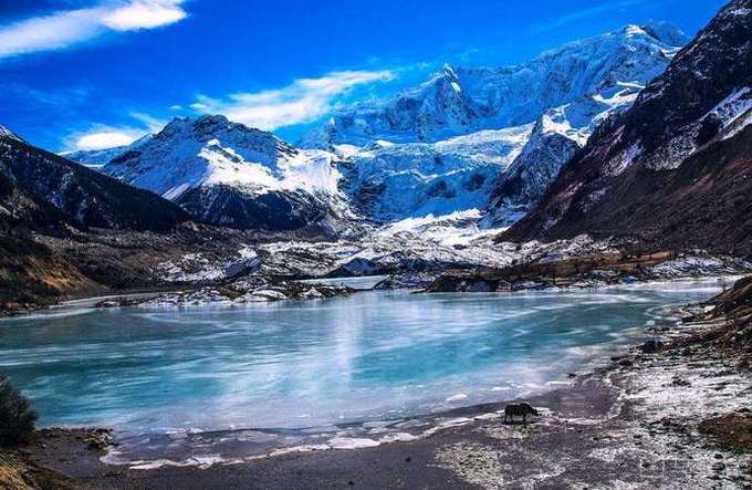 該冰川常年雪光閃耀,景色神奇迷人。米堆冰川位于北緯29°,但冰川末端卻比北緯近44°的天山博格多山的冰川還要低,這是我國現(xiàn)代冰川中較為特殊的現(xiàn)象,與喜瑪拉雅山東南段的氣候有著密切的關系。