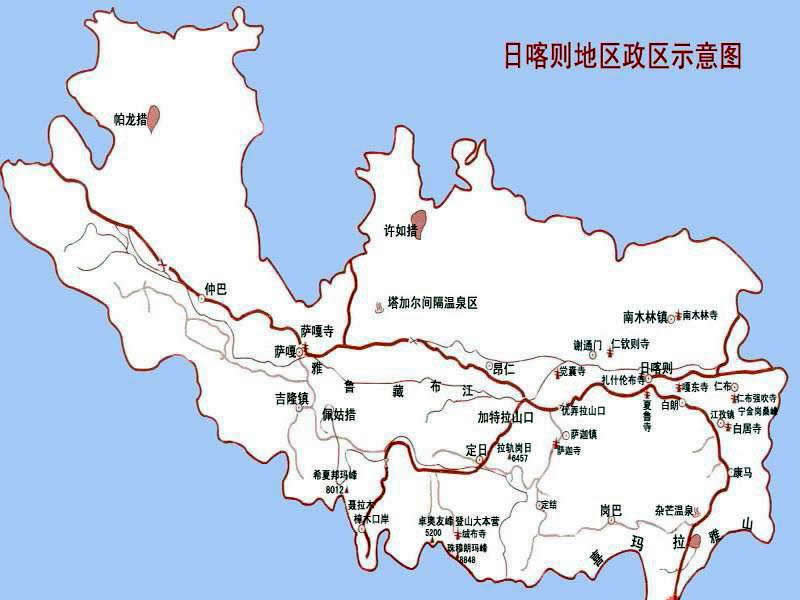 定結(jié)縣 面積5834.6平方千米,人口20362,政府駐江嘎鎮(zhèn),下轄3個鎮(zhèn)、7個鄉(xiāng)