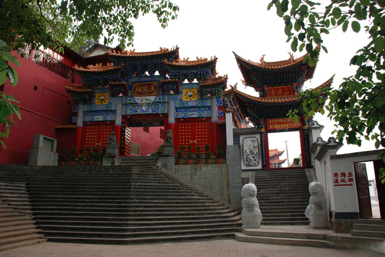 保山玉皇閣,位于保山市城西太保山上,是保山境內(nèi)規(guī)模最大,保存最好的道教建筑群之一。始于嘉靖二十八年(1549年),三十八年(1559年)落成開放。占地面積3399.2平方米,依地形而建,坐西向東,橫向布局為三個(gè)院落,分別為山門、三官殿、灶君樓。主體建筑玉皇閣居于整個(gè)建筑群的中央,由大殿及鐘、鼓二亭組成一個(gè)“品”字形院落。整個(gè)建筑氣勢(shì)雄偉,結(jié)構(gòu)精湛,裝飾華美,充分體現(xiàn)了封建社會(huì)帝王為尊、皇權(quán)至上的構(gòu)思主題,具有極高的史學(xué)研究和藝術(shù)鑒賞價(jià)值。 2006年5月,保山玉皇閣被國(guó)務(wù)院公布為第六批全國(guó)重點(diǎn)文物保護(hù)單位。