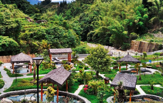溫泉 龍陵縣共有42處溫泉,分布在縣內(nèi)的各個(gè)鄉(xiāng)鎮(zhèn),其中溫泉最集中的是被譽(yù)為“神湯奇水”的邦臘掌,泉區(qū)溫泉密布,有泉眼100余孔,日供水量1382.4立方米,最高水溫達(dá)102攝氏度,僅在0.4平方公里區(qū)域內(nèi)就容有氡氟泉、碳酸泉和硫磺泉等多種溫泉,堪稱(chēng)“溫泉博物館”。
