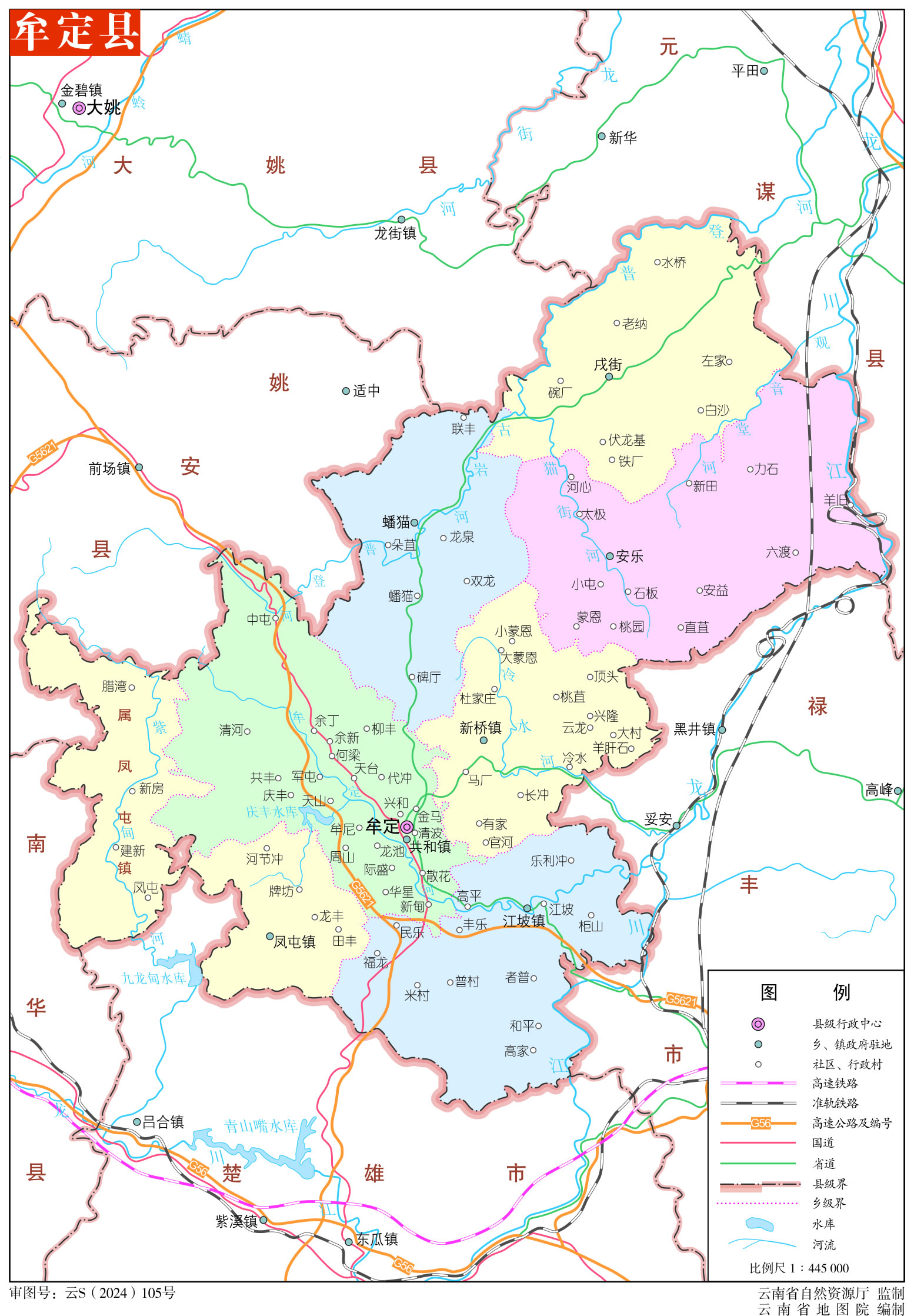 牟定縣轄4個鎮(zhèn)、3個鄉(xiāng):