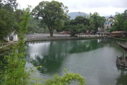 和順龍?zhí)稙榈叵掠咳纬,潭方?shù)十畝,碧波蕩漾,水體澄澈,游魚(yú)可數(shù),潭周邊以精美石欄飾之,潭中石亭翼然,潭畔古木蒼天。