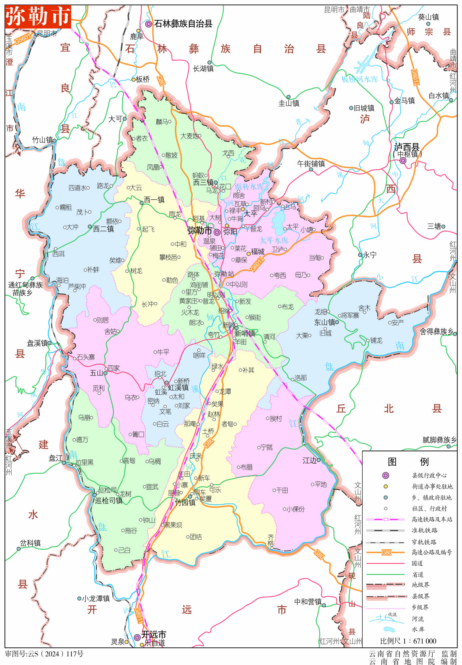 彌勒市轄3個(gè)街道、9個(gè)鎮(zhèn)、2個(gè)鄉(xiāng):