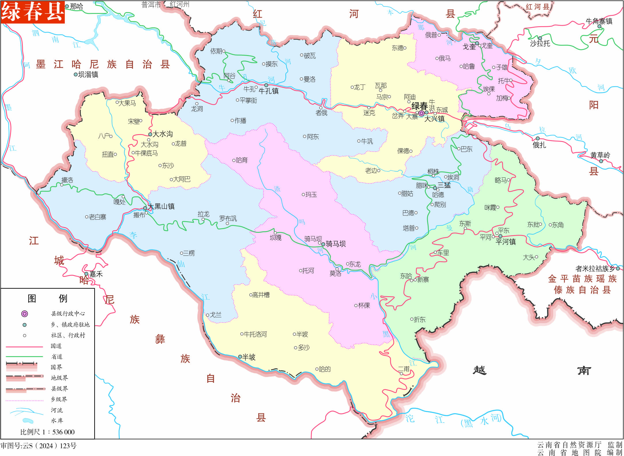 綠春縣轄4個(gè)鎮(zhèn)、5個(gè)鄉(xiāng):