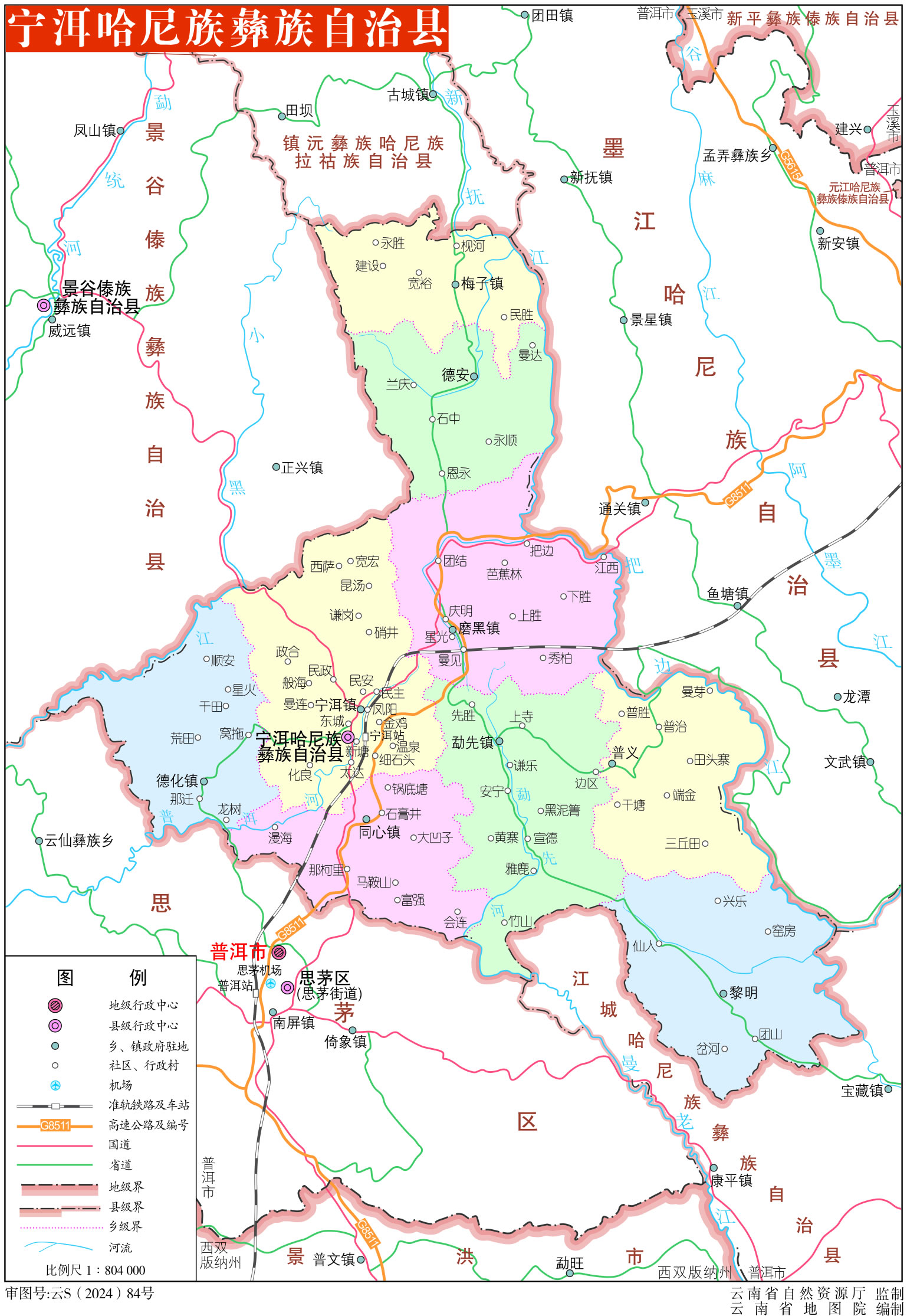 鎮(zhèn):寧洱鎮(zhèn)、磨黑鎮(zhèn)、德化鎮(zhèn)、同心鎮(zhèn)、勐先鎮(zhèn)、梅子鎮(zhèn)