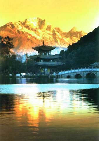 玉龍雪山隨著時(shí)令和明暗的交替,景觀也變幻無常。時(shí)而云蒸霧涌,玉龍乍隱乍現(xiàn),時(shí)而碧天如水,萬里無云,群峰像被玉液清洗過一樣,晶瑩的雪光耀目晃眼,具有"白雪無古今,乾坤失曉昏"的光輝;東方初曉,晨曦罩峰頂,多彩的霞光映染雪峰,白雪呈緋紅狀與彩霞掩映閃爍;傍晚,斜輝把雪峰染抹得像披上紅紗,云朵帶 著晚霞,飛歸峰間谷壑;入夜,月光溶溶,雪峰朗朗,顯得溫柔,恬靜。