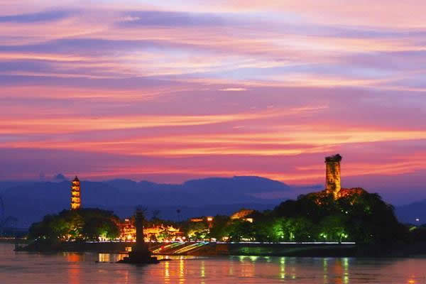 2006年6月,江心嶼燈光秀開始動工建設(shè),動用現(xiàn)代影射原理和多種手法,重點突出二塔一寺。