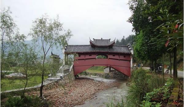 如龍橋:位于慶元縣舉水鄉(xiāng)月山村南側,橫跨于舉溪,呈南北走向,因其態(tài)勢與后山山脊的古松林依稀相連,橋似龍首下傾,故名。如龍橋修建于明天啟五年(1625),其結構復雜,工藝精湛,功能完備,系迄今發(fā)現(xiàn)有明確紀年、年代最早的木拱廊橋之一。此橋建筑上頗具宋代遺風,目前在全國已屬少見,具有很高的歷史、藝術和科學考察價值,為全國重點文物保護單位。