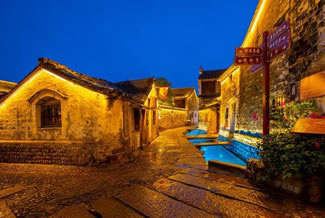 古鎮(zhèn)的夜是真正的黑夜,只有寂靜的古樹,老宅院和隱約可聞的流水聲,給人一種深沉的寂寥感。當古鎮(zhèn)這純潔的黑纏繞在我們的周圍時,使我們更深刻地領悟到了光的內(nèi)涵。徜徉在古鎮(zhèn)漆黑的夜晚,正好去細細體驗心靈凈化的旅程。