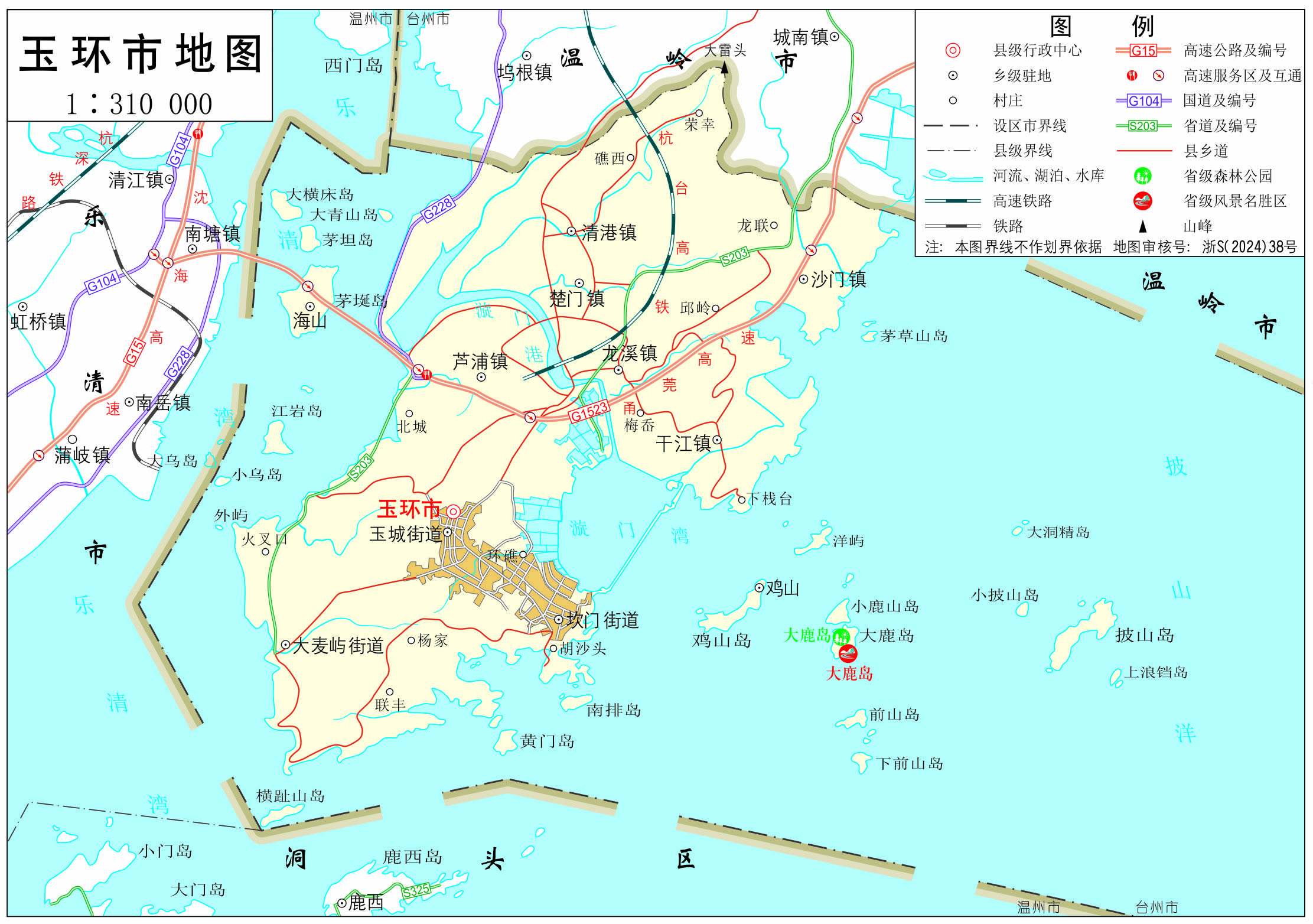 玉環(huán)縣轄3個(gè)街道、5個(gè)鎮(zhèn)、3個(gè)鄉(xiāng):