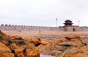 定海城——位于鵓鴣門后門沙灘上,是電影《鴉片戰(zhàn)爭》舟山攝制地主要景點(diǎn)之一,《鴉片戰(zhàn)爭》定海保衛(wèi)戰(zhàn)是整部電影的高潮,戰(zhàn)斗場面悲壯激烈,表現(xiàn)中國人民不屈不撓的精神。整個(gè)城墻長230米,寬12米,最高處12米,設(shè)城樓、古炮位、箭垛、旗桿等設(shè)施,飛檐翅角,黑瓦紅墻,整座城墻古樸典雅,雄偉壯麗。
