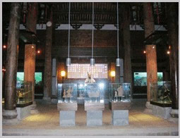 向右進(jìn)一小門是一小展廳,展示的是諸葛村村民中收集來的一些原諸葛族人在外經(jīng)營藥業(yè)時(shí)保存下來的藥用器具,有明代的石藥碾、藥壇,有清代的藥碗、錢稱、藥匙、藥壺,還有百年老店“天一堂”清代期間制售的 “諸葛行軍散”、“臥龍丹”、“眼藥膏”!疤煲惶谩、“保仁堂”的藥店印章。