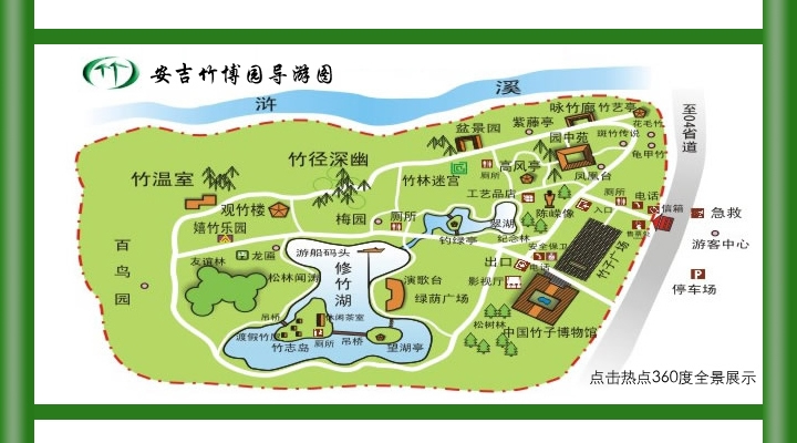 3、高速公路:A9 -> 申蘇浙皖(安徽方向) -> 杭長高速 -> 安吉-> 安吉竹博園